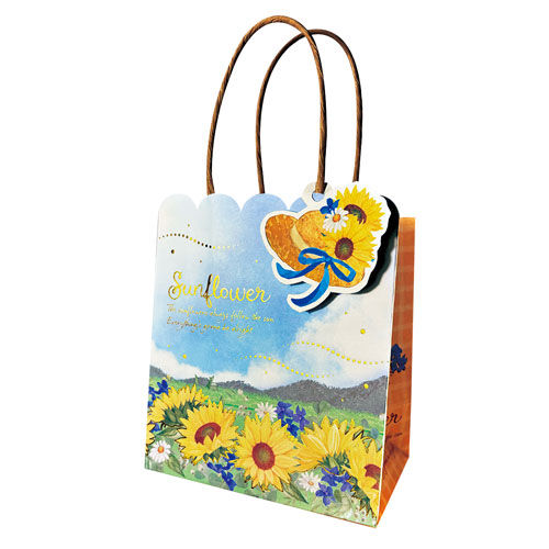 PS26-S005/ サンフラワーペーパーバッグ&タグ 金箔プリント ※紙タグつき